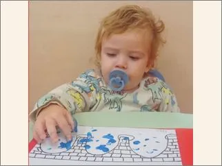 Постигнување: Децата во активноста учествуваа со интерес, нанесувајки сина боја со прстиња и така ја претставија реката Вардар. Преку игра со боја ги развиваа сензорите доживувања координацијата на движењата.