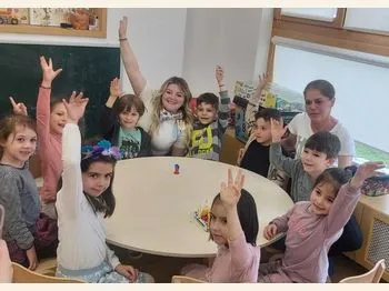 Денес во нашата голема група, имавме посебна посета од ООУ „Кирил и Методиј“, кои ни ја претставија својата програма и ни покажаа дел од нивните активности.